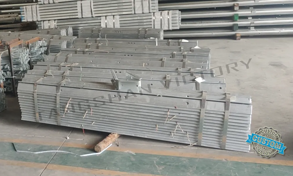 The power parts are applied to the pole or tower to support the main component of the power transmission cable. Main components include Electric cross arm, Electric pole Hoop, hot dip galvanized LV house angle iron steel cross arm, Electric bracket, and Transformer Fence.